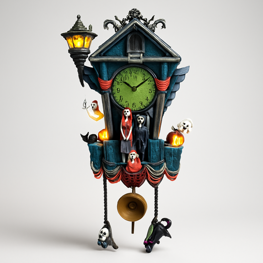Bring spooky charm to any room with this resin hanging clock ornament—perfect as Halloween decoration, wall decor, and seasonal home decor. Crafted from durable resin, the gothic-style hanging clock ornament features a detailed look for eye-catching wall art. It is a decorative timepiece only—the clock does not run and lights do not turn on— making it a safe, low-maintenance accent that instantly adds character to your space.
