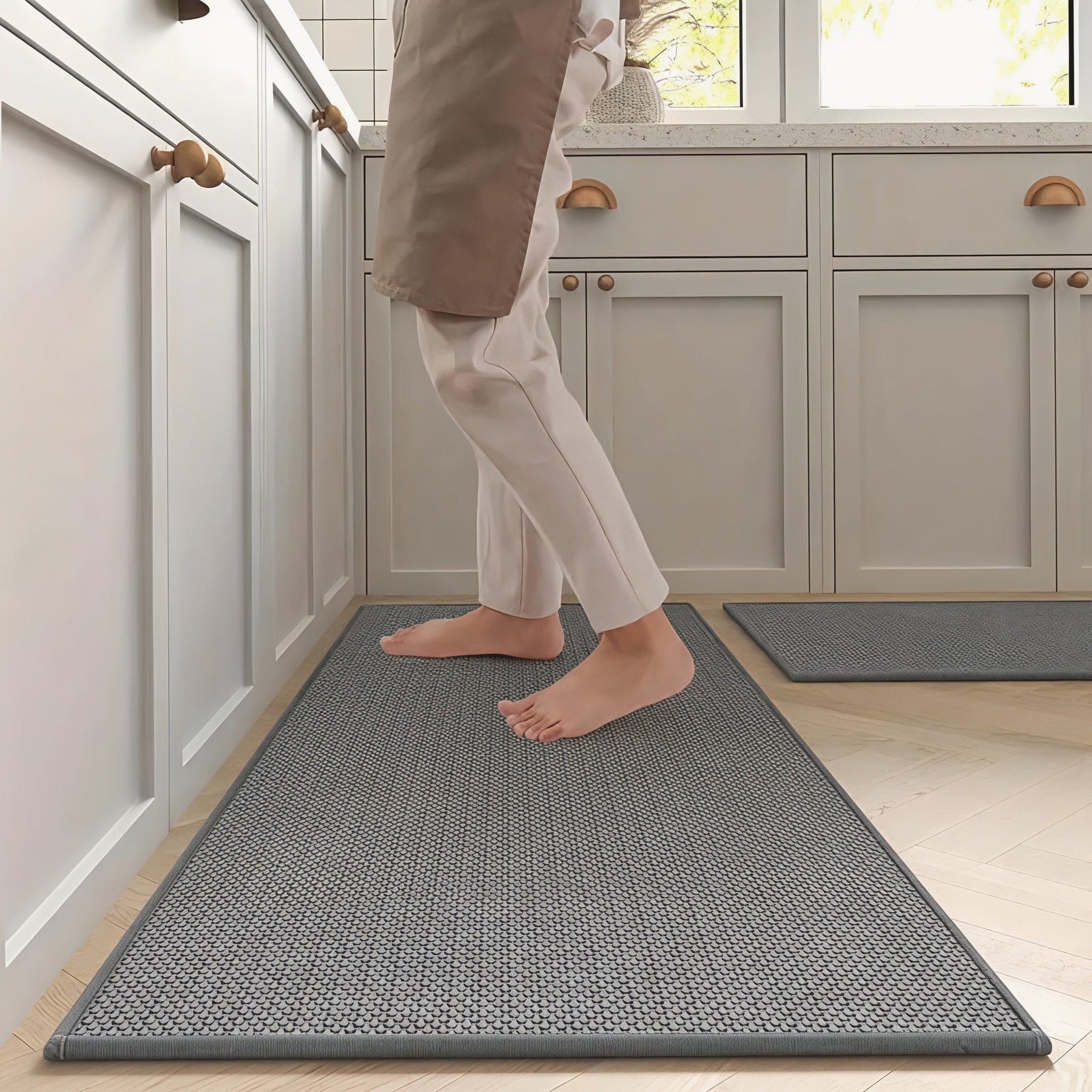 Make cooking easier and safer with our non-slip kitchen floor mat set. Designed to reduce tired feet and help prevent slips, these anti-fatigue mats add comfort to your kitchen routine. Crafted with durable eco-friendly twill material, they're easy to clean and perfect for everyday use.