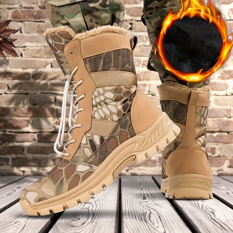 Tactical combat boots for hunting gear and hiking with lightweight support and durable traction. Built for long days in rough terrain, these high-ankle boots combine a rugged upper with breathable fabric, a slip-resistant TPR outsole, and shock-absorbing cushioning. The lace-up fit keeps your foot secure while the flexible midsole helps you move fast and stay comfortable in all seasons.